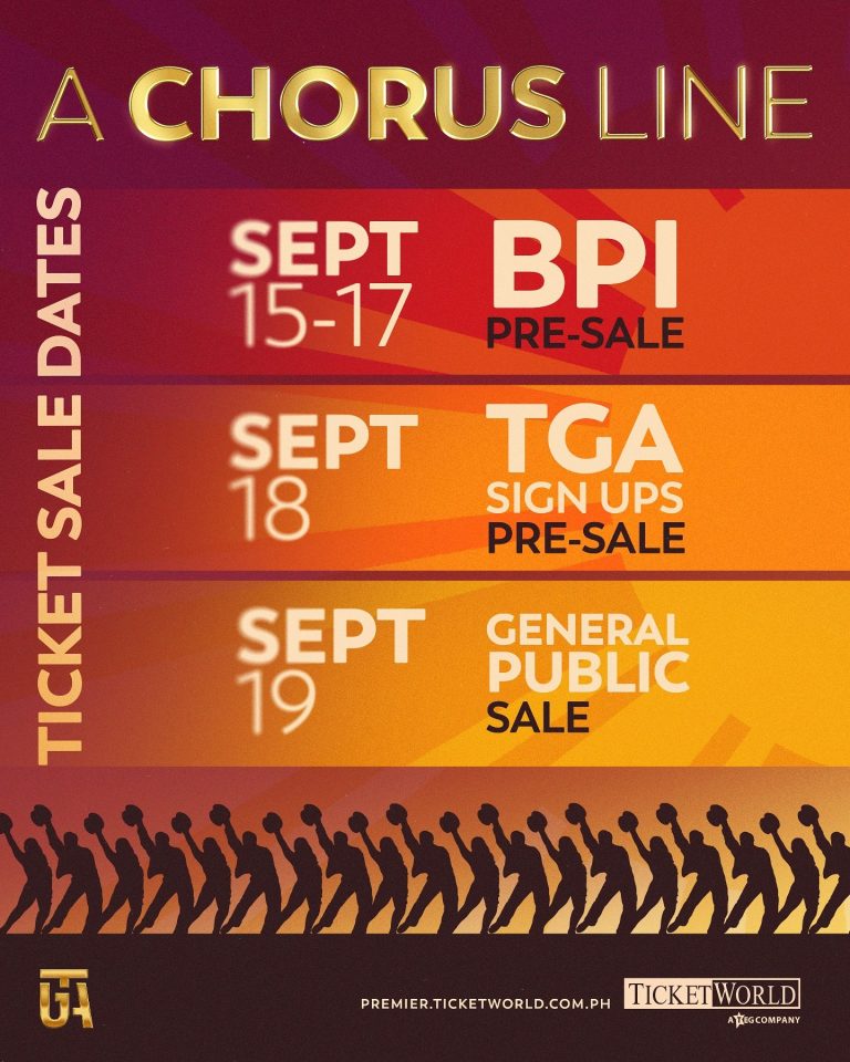 Tickets sales roll out starting September 15-17 for BPI card holders, TGA early sign-ups on September 18, and to the general public September 19 via Ticket World.