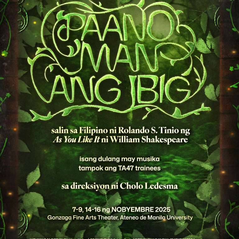 Serving as this season’s trainee production, Paano Man Ang Ibig continues Tanghalang Ateneo’s tradition of reimagining classical works through a Filipino lens. As the season opener, it sets the tone for a season that focuses on the woman’s voice finding full expression, not only in opposition, but in healing, joy, and solidarity. For Tanghalang Ateneo’s trainees, stepping into the Forest of Ardén is both a creative and personal journey: an opportunity to discover their voices, build community, and experience the joy of theater-making together. In revisiting Shakespeare through Tinio’s language and the perspectives of emerging artists, the production weaves tradition and new vision, showing how stories from the past can continue to speak powerfully in the present.
