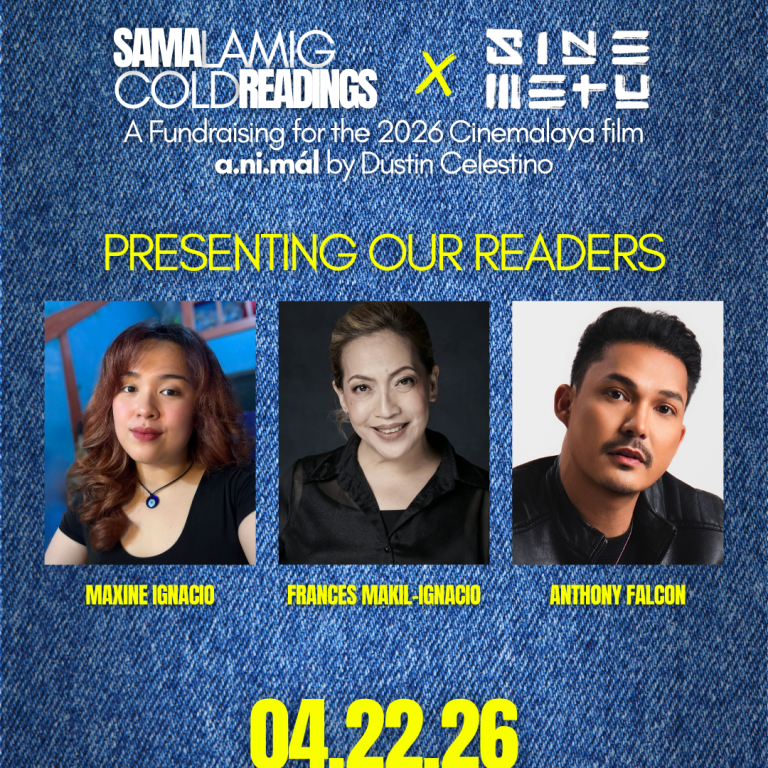 April 21, 2026 - Samalamig Cold Readings known for its community-led event for cold readings of fresh and WIP scripts returns for a special event before it resumes for its 3 rd season in a collaboration with SINE METU for a fundraising event to support their upcoming 2026 Cinemalaya film, a.ni.mál.