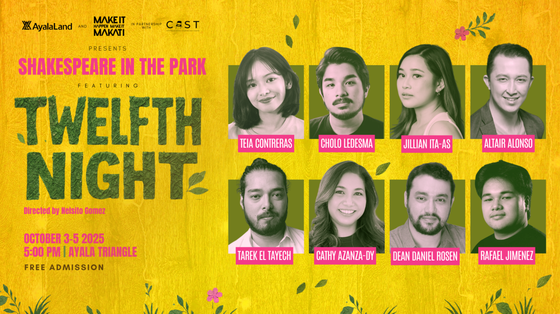 Ayala Land and Make It Makati, in partnership with CAST (Company of Actors in Streamlined Theatre), proudly present Shakespeare in the Park featuring Twelfth Night at Ayala Triangle right in the middle of Ayala Avenue in Makati.