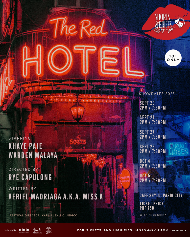 Catch all the action on September 20 – October 5, with 2PM and 7PM shows, at Café Shylo (Showroom by Projects Unlimitd), Skyway Twin Towers, Pasig.